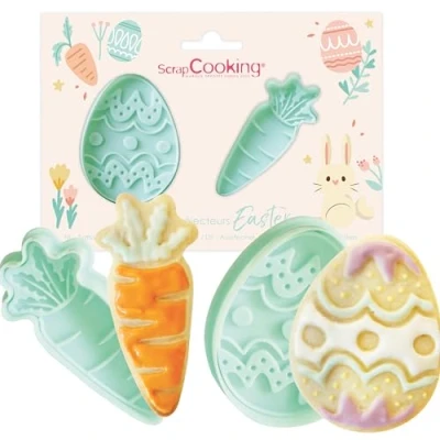 MAKE BEAUTIFUL EASTER COOKIES - Discover our set of 2 Easter ejector cutters. You will find in this set an egg-shaped cutter and another in the shape of a carrot! Perfect for Easter celebrations, these cutters will allow you to add a touch of originality to your sugar paste, cookies and much more. Thanks to their built-in ejection mechanism, the release will be easy and effortless. Don't settle for chocolates anymore and amaze your children by creating Easter themed pastries! These cutters will offer you the opportunity to make fun and festive creations that will delight both young and old gourmets.