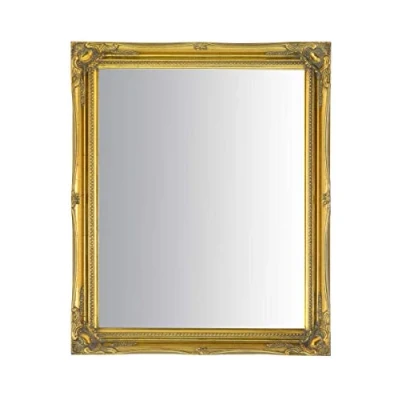 This beautiful swept frame mirror is manufactured to the highest quality The moulding is carved wood and measures 2" wide This ornate frame has classical corner and flower adornment. Size shown is the overall size, mirror size is 20" x16" This mirror has mdf backing board and can be hung portrait or landscape style and is supplied with the hangers.