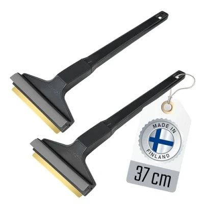 ✅𝗙𝗔𝗦𝗧 & 𝗘𝗙𝗙𝗢𝗥𝗧𝗟𝗘𝗦𝗦 - The Murska long ice scraper for car windscreen with brass blade [ Made in Finland ] glides effortlessly & easy through ice like a hot knife through butter. Even stubborn ice is removed quickly and completely. This makes ice scraping child's play ✅𝗘𝗙𝗙𝗜𝗖𝗜𝗘𝗡𝗧 & 𝗦𝗔𝗙𝗘 - Our finnish car windscreen scraper for car long gets you safely through the winter. No double work! The car windows are cleared of ice and snow in just a few strokes without leaving any residue. For a clear view & safe driving. Successfully for over 10 years ✅𝗟𝗜𝗚𝗛𝗧 & 𝗛𝗔𝗡𝗗𝗬 - The brass car ice scraper sits comfortably in the hand & has a rubber lip - Quick & Easy - ideal & practical size of the car window scraper maket it fits into many door shelf / compartments ✅𝗜𝗡𝗡𝗢𝗩𝗔𝗧𝗜𝗩𝗘 𝗚𝗘𝗢𝗠𝗘𝗧𝗥𝗬 - The special inclination of the long handled car ice scraper brass blade and the ideally matched length of 37 cm make removing ice, frost and snow even easier and quicker, as by other car scraper ✅𝗕𝗥𝗔𝗦𝗦 & 𝗛𝗜𝗣𝗦 - The perfectly crafted brass blade is a real miracle weapon against ice, frost and snow. Brass is softer than glass, so no danger to car windows. We use specially developed HIPS (high-impact polystyrene) for the handle of our windscreen ice scraper ✅𝗦𝗖𝗔𝗡𝗗𝗜𝗡𝗔𝗩𝗜𝗔𝗡 𝗤𝗨𝗔𝗟𝗜𝗧𝗬 - Developed, tested and manufactured in Finland (north europe) - the insider tool tip of Scandinavian winter professionals - this ice scrapper defies temperatures of up to -40°C without batting an eyelid - you won't need another one! ✅𝗗𝗘𝗟𝗜𝗩𝗘𝗥𝗬 - 2 pieces durable L&P A055 long ice scraper for car Murska with brass blade - random color - with tips for use