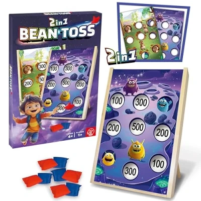 2-in-1 Double Sided Fun: Experience twice the enjoyment with our 2-in-1 Bean Toss. Featuring double-sided play, it's perfect for hula hoops enthusiasts and garden toys lovers alike, making it an ideal addition to your outdoor games. Indoor and Outdoor Play: Take the joy of garden games for kids and adults anywhere with our indoor outdoor games. Whether it's sunny or rainy, this bean bag toss game brings endless fun to both your living room and backyard. Quick and Easy Setup: Our bean bag target game's foldable leg design ensures a hassle-free setup. With quick assembly, this garden game is ready for all your outdoor party games or casual garden sandbag game sessions in no time. Durable and Lightweight: Built with a sturdy wooden frame, our beanbag tossing game is perfect for outside games for kids 5-12. Lightweight yet durable, it's easy to carry and set up for garden games for all ages. Score Big with Friends: Take aim and score big with targets featuring score values in our bean bag toss wooden game. Perfect for giant outdoor games for kids and garden games for adults, it's sure to be a hit at your next outdoor family game event.