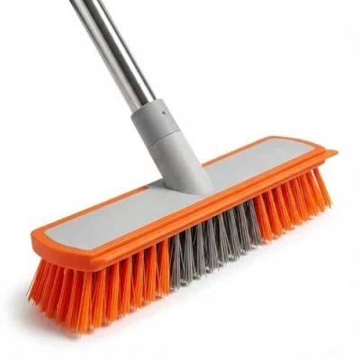 [BUILT FOR TOUGH MESSES]Designed with stiff bristles specifically for rough surfaces like concrete, stone, and tiling. Perfect for scrubbing away stubborn dirt, garden moss, and garage oil stains. (Note: Bristles are stiff and not recommended for delicate wooden floors) [2-IN-1 SCRUB & SCRAPE]Features a built-in rubber squeegee edge. After scrubbing the patio or garage floor, simply flip the brush to scrape away dirty water, sewage, or melting snow. Keeps your outdoor areas dry and safe. [SAVING YOUR BACK]Comes with a segmented stainless steel handle that can be adjusted to your preferred length. No need to bend over while scrubbing large areas like driveways or pool decks. Lightweight yet functional for daily chores. [VERSATILE OUTDOOR USE]An essential tool for the winter season. Use it to clear slush from your front porch, scrub muddy footprints off the hallway tiles, or clean the balcony. A rugged tool for rough cleaning tasks. [EASY TO ASSEMBLE & STORE]The handle screws together easily and features a hanging loop for tidy storage in your shed or utility cupboard.