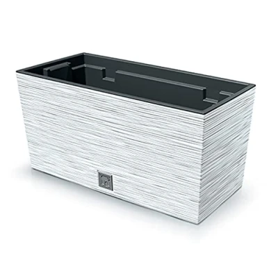 2-in-1 Flower Box with Inner Box Balcony Box Plant Pot Flower Pot Riffel Look Plastic Rectangular 39.5 cm x 18.5 cm x 19.5 cm (White)