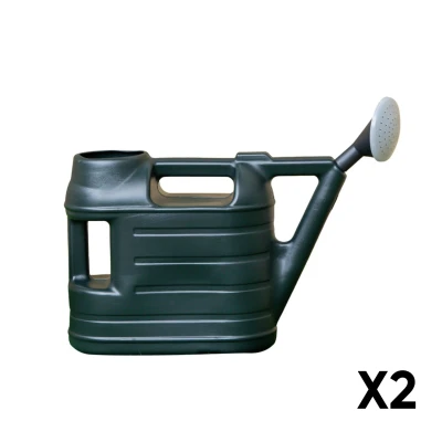 ManoManoGeneral description 2 x 6.5 Litre Green Watering Cans complete with a rose on each for a gentle stream. Each can features two handles, making it ideal for use around the garden. Technical specifications Capacity: 6.5 Litres Color: Green