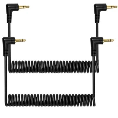 Compatible Devices - 2pcs 1 metres This Coiled 3.5mm Aux Cable work for car stereo, home stereo, iPhone, Samsung, LG, Sony, tablet, PC, CD, MP3, MP4, headphone, headset and other 3.5mm plug devices. 90 Degree Angle - This Coiled 3.5mm TRS Audio Cable allowing you connect narrow space, 90 degree angle can solve a lot of troubles, 3.5mm straight plug can not connect the trouble. 50 cm Coiled Cable - This Mini coiled Aux audio cable OD 1.5mm, the MAX stretched length about 39 inch, No stretched length about 6 inch. Golden Plated Jack - 3.5mm gold-plated jacks can be reduced signal loss, slowed down the plug oxidation and extended the service life. Cable L: 30cm / 12 inch Notice - This Coiled 3.5mm Extension Cable is 3 pole, support audio signal only, compatible with all universal 3.5mm female.