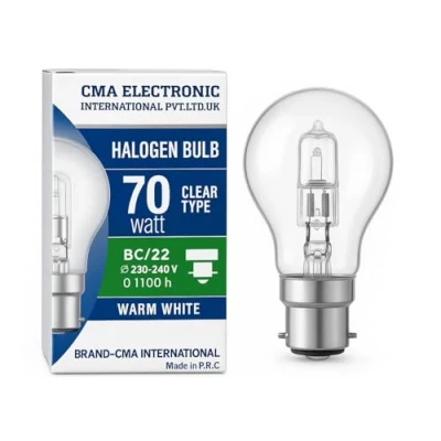 2 Pack 70W Halogen Energy Saver Bulbs Eco Classic Clear Glass Bayonet B22 BC Cap Warm White 2700K Light Instant Full Brightness Long Life Replacement for 60 w Traditional Bulb