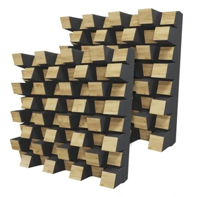 ACOUSTIC SOLUTION: Improve the acoustics of your room with our high quality acoustic diffusers. When used in sequence, this solution has the ability to transform good room acoustics into outstanding acoustics, imparting a sense of spaciousness to the audio environment by diffusing undesirable reflections and eliminating lingering echoes. The two-dimensional sound diffusion broadens the sonic landscape, creating the impression of a more expansive room. APPLICATIONS: These diffusers, crafted from HDF panels and acoustic foam, are an excellent choice for optimizing sound quality in recording studios, home theaters, music halls, and other spaces where acoustic performance are of paramount importance. They can be used as a standalone solution or in combination with other acoustic materials (available in our store) to achieve optimal diffusion, reflection, absorption, soundproofing, and sound isolation. FUNCTIONALITY: Diffusion, Scattering, Reflection and Absorption | SCATTERING RANGE: From 625 Hz to 7000 Hz | ABSORPTION FREQUENCY RANGE: Low, medium, and high frequencies | OVERALL NRC (Noise Reduction Coefficient): 0.48 | MATERIAL: Laminated HDF and Acoustic foam | DIMENSIONS: 500x500 mm / 19.7x19.7 inches | PACKAGING: 2 units - total coverage area = 0.5 m² / (5.4 ft²) INSTALLATION OPTIONS: Fixing with double-sided adhesive tape (included) in the vertical plane. To install the panels on the ceiling, it is recommended to use construction adhesive (so-called liquid nails). CUSTOMER SUPPORT: Our team is committed to providing a positive experience with every order. If you encounter any issues with your product, you can reach out through your Amazon account — we're always ready to assist.