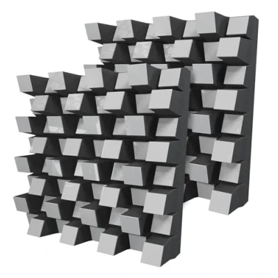 ACOUSTIC SOLUTION: Improve the acoustics of your room with our high quality acoustic diffusers. When used in sequence, this solution has the ability to transform good room acoustics into outstanding acoustics, imparting a sense of spaciousness to the audio environment by diffusing undesirable reflections and eliminating lingering echoes. The two-dimensional sound diffusion broadens the sonic landscape, creating the impression of a more expansive room. APPLICATIONS: These diffusers, crafted from HDF panels and acoustic foam, are an excellent choice for optimizing sound quality in recording studios, home theaters, music halls, and other spaces where acoustic performance are of paramount importance. They can be used as a standalone solution or in combination with other acoustic materials (available in our store) to achieve optimal diffusion, reflection, absorption, soundproofing, and sound isolation. FUNCTIONALITY: Diffusion, Scattering, Reflection and Absorption | SCATTERING RANGE: From 625 Hz to 7000 Hz | ABSORPTION FREQUENCY RANGE: Low, medium, and high frequencies | OVERALL NRC (Noise Reduction Coefficient): 0.48 | MATERIAL: Laminated HDF and Acoustic foam | DIMENSIONS: 500x500 mm / 19.7x19.7 inches | PACKAGING: 2 units - total coverage area = 0.5 m² / (5.4 ft²) INSTALLATION OPTIONS: Fixing with double-sided adhesive tape (included) in the vertical plane. To install the panels on the ceiling, it is recommended to use construction adhesive (so-called liquid nails). CUSTOMER SUPPORT: Our team is committed to providing a positive experience with every order. If you encounter any issues with your product, you can reach out through your Amazon account — we're always ready to assist.