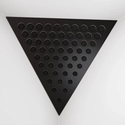 2 Pack — Ceiling Corner Bass Trap "Triangle F" Triangular Pyramid Acoustic Foam with Perforated Laminated HDF Plate and Fabric 42x42x42cm [ ROUNDS Black ]
