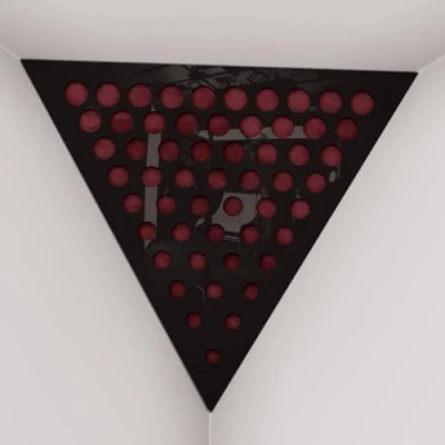 2 Pack — Ceiling Corner Bass Trap "Triangle F" Triangular Pyramid Acoustic Foam with Perforated Laminated HDF Plate and Fabric 42x42x42cm [ ROUNDS Black plastic Burgundy ]