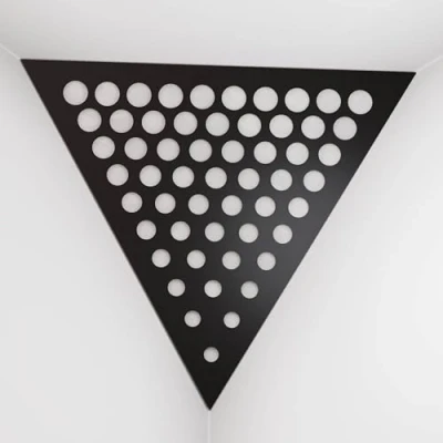 2 Pack — Ceiling Corner Bass Trap "Triangle F" Triangular Pyramid Acoustic Foam with Perforated Laminated HDF Plate and Fabric 42x42x42cm [ ROUNDS Black White ]