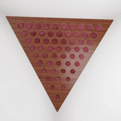 APPLICATION: These acoustic bass traps, made of high-density fiberboard with sound-absorbing materials, excel in the low and mid frequency ranges. Typically installed in the upper corners between the wall and ceiling, they are used in recording studios, home entertainment centers, music studios, corporate offices, training rooms, concert venues, conference rooms, canteens, hotels, residences, religious institutions, recreational facilities, and broadcasting studios. ACOUSTIC IMPROVEMENT: Improve the acoustics of your room with our premium acoustic сorner bass traps. These bass traps offer superior sound control by effectively absorbing sound and reducing echo in any environment. Unlike traditional foam bass traps, our solutions provide significantly improved performance. Choose from a variety of unique designs and colors to perfectly complement your interior. CHARACTERISTICS: -Combination of absorption and diffusion - Absorption is effective for mid and low frequencies - Overall Noise Reduction Coefficient (NRC) of 0.53 - Power Dissipation Range: 160 Hz to 5,000 Hz - Material composition: laminated high density fiberboard (HDF) and acoustic foam - Dimensions: Front Triangle Side: 42 cm (16.5 inches) | Corner Depth: 32 cm (12.6 inches) These products are sold in sets of two. MOUNTING OPTIONS: Each bass trap is supplied with "double-sided adhesive tape" for easy corner installation. Optimum fastening is achieved by using a construction adhesive, commonly known as "liquid nails". CAREFUL SERVICE: Ensuring your satisfaction is our top priority! Every purchase is backed by a money-back guarantee. Your happiness is directly linked to our clients' happiness. If you have any questions or concerns, don't hesitate to contact us. We will respond quickly! Your satisfaction is always our first concern.