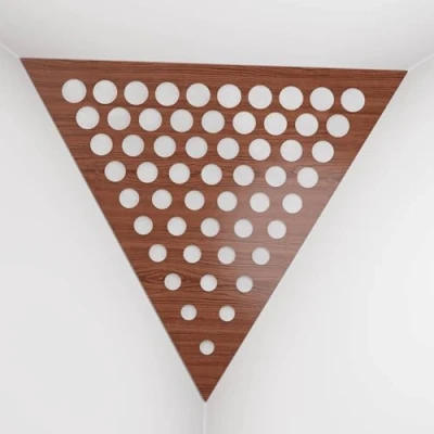 APPLICATION: These acoustic bass traps, made of high-density fiberboard with sound-absorbing materials, excel in the low and mid frequency ranges. Typically installed in the upper corners between the wall and ceiling, they are used in recording studios, home entertainment centers, music studios, corporate offices, training rooms, concert venues, conference rooms, canteens, hotels, residences, religious institutions, recreational facilities, and broadcasting studios. ACOUSTIC IMPROVEMENT: Improve the acoustics of your room with our premium acoustic сorner bass traps. These bass traps offer superior sound control by effectively absorbing sound and reducing echo in any environment. Unlike traditional foam bass traps, our solutions provide significantly improved performance. Choose from a variety of unique designs and colors to perfectly complement your interior. CHARACTERISTICS: -Combination of absorption and diffusion - Absorption is effective for mid and low frequencies - Overall Noise Reduction Coefficient (NRC) of 0.53 - Power Dissipation Range: 160 Hz to 5,000 Hz - Material composition: laminated high density fiberboard (HDF) and acoustic foam - Dimensions: Front Triangle Side: 42 cm (16.5 inches) | Corner Depth: 32 cm (12.6 inches) These products are sold in sets of two. MOUNTING OPTIONS: Each bass trap is supplied with "double-sided adhesive tape" for easy corner installation. Optimum fastening is achieved by using a construction adhesive, commonly known as "liquid nails". CAREFUL SERVICE: Ensuring your satisfaction is our top priority! Every purchase is backed by a money-back guarantee. Your happiness is directly linked to our clients' happiness. If you have any questions or concerns, don't hesitate to contact us. We will respond quickly! Your satisfaction is always our first concern.