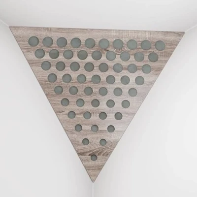 APPLICATION: These acoustic bass traps, made of high-density fiberboard with sound-absorbing materials, excel in the low and mid frequency ranges. Typically installed in the upper corners between the wall and ceiling, they are used in recording studios, home entertainment centers, music studios, corporate offices, training rooms, concert venues, conference rooms, canteens, hotels, residences, religious institutions, recreational facilities, and broadcasting studios. ACOUSTIC IMPROVEMENT: Improve the acoustics of your room with our premium acoustic сorner bass traps. These bass traps offer superior sound control by effectively absorbing sound and reducing echo in any environment. Unlike traditional foam bass traps, our solutions provide significantly improved performance. Choose from a variety of unique designs and colors to perfectly complement your interior. CHARACTERISTICS: -Combination of absorption and diffusion - Absorption is effective for mid and low frequencies - Overall Noise Reduction Coefficient (NRC) of 0.53 - Power Dissipation Range: 160 Hz to 5,000 Hz - Material composition: laminated high density fiberboard (HDF) and acoustic foam - Dimensions: Front Triangle Side: 42 cm (16.5 inches) | Corner Depth: 32 cm (12.6 inches) These products are sold in sets of two. MOUNTING OPTIONS: Each bass trap is supplied with "double-sided adhesive tape" for easy corner installation. Optimum fastening is achieved by using a construction adhesive, commonly known as "liquid nails". CAREFUL SERVICE: Ensuring your satisfaction is our top priority! Every purchase is backed by a money-back guarantee. Your happiness is directly linked to our clients' happiness. If you have any questions or concerns, don't hesitate to contact us. We will respond quickly! Your satisfaction is always our first concern.