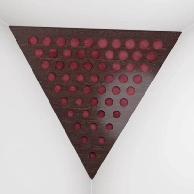 2 Pack — Ceiling Corner Bass Trap "Triangle F" Triangular Pyramid Acoustic Foam with Perforated Laminated HDF Plate and Fabric 42x42x42cm [ ROUNDS Wenge Burgundy ]