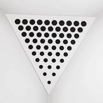 2 Pack — Ceiling Corner Bass Trap "Triangle F" Triangular Pyramid Acoustic Foam with Perforated Laminated HDF Plate and Fabric 42x42x42cm [ ROUNDS White Black ]