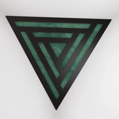 2 Pack — Ceiling Corner Bass Trap "Triangle F" Triangular Pyramid Acoustic Foam with Perforated Laminated HDF Plate and Fabric 42x42x42cm [ SCIFI Black Green ]