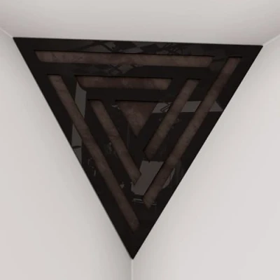2 Pack — Ceiling Corner Bass Trap "Triangle F" Triangular Pyramid Acoustic Foam with Perforated Laminated HDF Plate and Fabric 42x42x42cm [ SCIFI Black plastic Brown ]