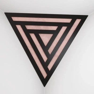 2 Pack — Ceiling Corner Bass Trap "Triangle F" Triangular Pyramid Acoustic Foam with Perforated Laminated HDF Plate and Fabric 42x42x42cm [ SCIFI Black Rose ]