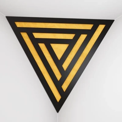 2 Pack — Ceiling Corner Bass Trap "Triangle F" Triangular Pyramid Acoustic Foam with Perforated Laminated HDF Plate and Fabric 42x42x42cm [ SCIFI Black Yellow ]