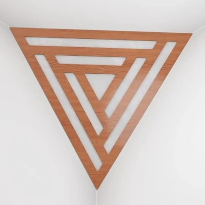 2 Pack — Ceiling Corner Bass Trap "Triangle F" Triangular Pyramid Acoustic Foam with Perforated Laminated HDF Plate and Fabric 42x42x42cm [ SCIFI Cherry White ]