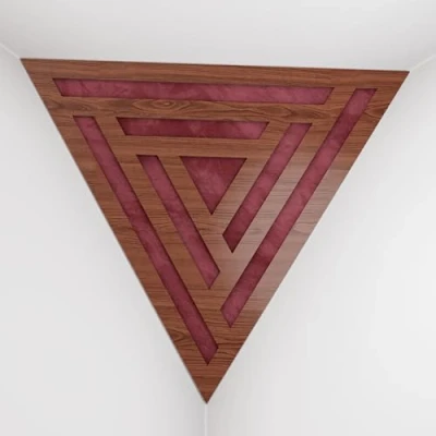 2 Pack — Ceiling Corner Bass Trap "Triangle F" Triangular Pyramid Acoustic Foam with Perforated Laminated HDF Plate and Fabric 42x42x42cm [ SCIFI Nut Burgundy ]