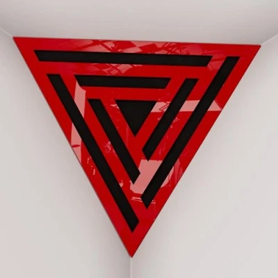 2 Pack — Ceiling Corner Bass Trap "Triangle F" Triangular Pyramid Acoustic Foam with Perforated Laminated HDF Plate and Fabric 42x42x42cm [ SCIFI Red plastic Black ]