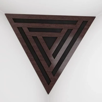 2 Pack — Ceiling Corner Bass Trap "Triangle F" Triangular Pyramid Acoustic Foam with Perforated Laminated HDF Plate and Fabric 42x42x42cm [ SCIFI Wenge Black ]