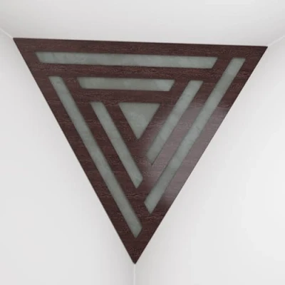 2 Pack — Ceiling Corner Bass Trap "Triangle F" Triangular Pyramid Acoustic Foam with Perforated Laminated HDF Plate and Fabric 42x42x42cm [ SCIFI Wenge Grey ]