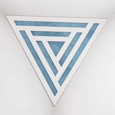 2 Pack — Ceiling Corner Bass Trap "Triangle F" Triangular Pyramid Acoustic Foam with Perforated Laminated HDF Plate and Fabric 42x42x42cm [ SCIFI White Blue ]