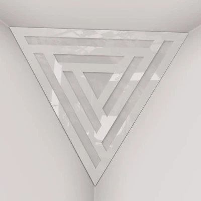 2 Pack — Ceiling Corner Bass Trap "Triangle F" Triangular Pyramid Acoustic Foam with Perforated Laminated HDF Plate and Fabric 42x42x42cm [ SCIFI White plastic ]