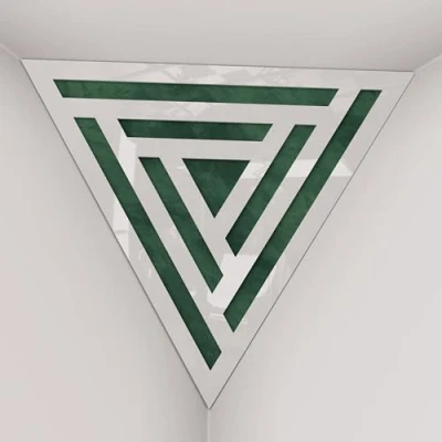 2 Pack — Ceiling Corner Bass Trap "Triangle F" Triangular Pyramid Acoustic Foam with Perforated Laminated HDF Plate and Fabric 42x42x42cm [ SCIFI White plastic Green ]
