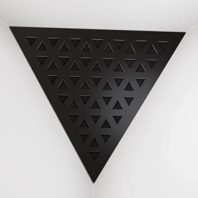 APPLICATION: These acoustic bass traps, made of high-density fiberboard with sound-absorbing materials, excel in the low and mid frequency ranges. Typically installed in the upper corners between the wall and ceiling, they are used in recording studios, home entertainment centers, music studios, corporate offices, training rooms, concert venues, conference rooms, canteens, hotels, residences, religious institutions, recreational facilities, and broadcasting studios. ACOUSTIC IMPROVEMENT: Improve the acoustics of your room with our premium acoustic сorner bass traps. These bass traps offer superior sound control by effectively absorbing sound and reducing echo in any environment. Unlike traditional foam bass traps, our solutions provide significantly improved performance. Choose from a variety of unique designs and colors to perfectly complement your interior. CHARACTERISTICS: -Combination of absorption and diffusion - Absorption is effective for mid and low frequencies - Overall Noise Reduction Coefficient (NRC) of 0.53 - Power Dissipation Range: 160 Hz to 5,000 Hz - Material composition: laminated high density fiberboard (HDF) and acoustic foam - Dimensions: Front Triangle Side: 42 cm (16.5 inches) | Corner Depth: 32 cm (12.6 inches) These products are sold in sets of two. MOUNTING OPTIONS: Each bass trap is supplied with "double-sided adhesive tape" for easy corner installation. Optimum fastening is achieved by using a construction adhesive, commonly known as "liquid nails". CAREFUL SERVICE: Ensuring your satisfaction is our top priority! Every purchase is backed by a money-back guarantee. Your happiness is directly linked to our clients' happiness. If you have any questions or concerns, don't hesitate to contact us. We will respond quickly! Your satisfaction is always our first concern.
