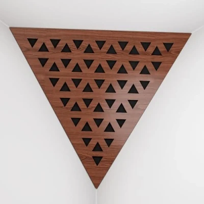 APPLICATION: These acoustic bass traps, made of high-density fiberboard with sound-absorbing materials, excel in the low and mid frequency ranges. Typically installed in the upper corners between the wall and ceiling, they are used in recording studios, home entertainment centers, music studios, corporate offices, training rooms, concert venues, conference rooms, canteens, hotels, residences, religious institutions, recreational facilities, and broadcasting studios. ACOUSTIC IMPROVEMENT: Improve the acoustics of your room with our premium acoustic сorner bass traps. These bass traps offer superior sound control by effectively absorbing sound and reducing echo in any environment. Unlike traditional foam bass traps, our solutions provide significantly improved performance. Choose from a variety of unique designs and colors to perfectly complement your interior. CHARACTERISTICS: -Combination of absorption and diffusion - Absorption is effective for mid and low frequencies - Overall Noise Reduction Coefficient (NRC) of 0.53 - Power Dissipation Range: 160 Hz to 5,000 Hz - Material composition: laminated high density fiberboard (HDF) and acoustic foam - Dimensions: Front Triangle Side: 42 cm (16.5 inches) | Corner Depth: 32 cm (12.6 inches) These products are sold in sets of two. MOUNTING OPTIONS: Each bass trap is supplied with "double-sided adhesive tape" for easy corner installation. Optimum fastening is achieved by using a construction adhesive, commonly known as "liquid nails". CAREFUL SERVICE: Ensuring your satisfaction is our top priority! Every purchase is backed by a money-back guarantee. Your happiness is directly linked to our clients' happiness. If you have any questions or concerns, don't hesitate to contact us. We will respond quickly! Your satisfaction is always our first concern.