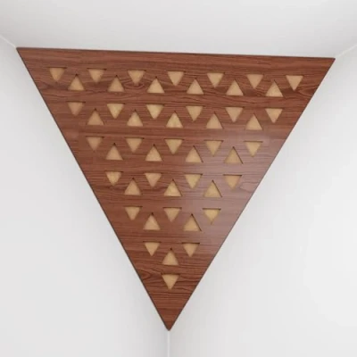 APPLICATION: These acoustic bass traps, made of high-density fiberboard with sound-absorbing materials, excel in the low and mid frequency ranges. Typically installed in the upper corners between the wall and ceiling, they are used in recording studios, home entertainment centers, music studios, corporate offices, training rooms, concert venues, conference rooms, canteens, hotels, residences, religious institutions, recreational facilities, and broadcasting studios. ACOUSTIC IMPROVEMENT: Improve the acoustics of your room with our premium acoustic сorner bass traps. These bass traps offer superior sound control by effectively absorbing sound and reducing echo in any environment. Unlike traditional foam bass traps, our solutions provide significantly improved performance. Choose from a variety of unique designs and colors to perfectly complement your interior. CHARACTERISTICS: -Combination of absorption and diffusion - Absorption is effective for mid and low frequencies - Overall Noise Reduction Coefficient (NRC) of 0.53 - Power Dissipation Range: 160 Hz to 5,000 Hz - Material composition: laminated high density fiberboard (HDF) and acoustic foam - Dimensions: Front Triangle Side: 42 cm (16.5 inches) | Corner Depth: 32 cm (12.6 inches) These products are sold in sets of two. MOUNTING OPTIONS: Each bass trap is supplied with "double-sided adhesive tape" for easy corner installation. Optimum fastening is achieved by using a construction adhesive, commonly known as "liquid nails". CAREFUL SERVICE: Ensuring your satisfaction is our top priority! Every purchase is backed by a money-back guarantee. Your happiness is directly linked to our clients' happiness. If you have any questions or concerns, don't hesitate to contact us. We will respond quickly! Your satisfaction is always our first concern.