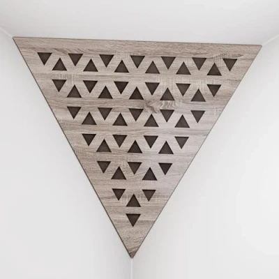 APPLICATION: These acoustic bass traps, made of high-density fiberboard with sound-absorbing materials, excel in the low and mid frequency ranges. Typically installed in the upper corners between the wall and ceiling, they are used in recording studios, home entertainment centers, music studios, corporate offices, training rooms, concert venues, conference rooms, canteens, hotels, residences, religious institutions, recreational facilities, and broadcasting studios. ACOUSTIC IMPROVEMENT: Improve the acoustics of your room with our premium acoustic сorner bass traps. These bass traps offer superior sound control by effectively absorbing sound and reducing echo in any environment. Unlike traditional foam bass traps, our solutions provide significantly improved performance. Choose from a variety of unique designs and colors to perfectly complement your interior. CHARACTERISTICS: -Combination of absorption and diffusion - Absorption is effective for mid and low frequencies - Overall Noise Reduction Coefficient (NRC) of 0.53 - Power Dissipation Range: 160 Hz to 5,000 Hz - Material composition: laminated high density fiberboard (HDF) and acoustic foam - Dimensions: Front Triangle Side: 42 cm (16.5 inches) | Corner Depth: 32 cm (12.6 inches) These products are sold in sets of two. MOUNTING OPTIONS: Each bass trap is supplied with "double-sided adhesive tape" for easy corner installation. Optimum fastening is achieved by using a construction adhesive, commonly known as "liquid nails". CAREFUL SERVICE: Ensuring your satisfaction is our top priority! Every purchase is backed by a money-back guarantee. Your happiness is directly linked to our clients' happiness. If you have any questions or concerns, don't hesitate to contact us. We will respond quickly! Your satisfaction is always our first concern.