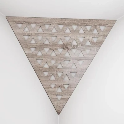 APPLICATION: These acoustic bass traps, made of high-density fiberboard with sound-absorbing materials, excel in the low and mid frequency ranges. Typically installed in the upper corners between the wall and ceiling, they are used in recording studios, home entertainment centers, music studios, corporate offices, training rooms, concert venues, conference rooms, canteens, hotels, residences, religious institutions, recreational facilities, and broadcasting studios. ACOUSTIC IMPROVEMENT: Improve the acoustics of your room with our premium acoustic сorner bass traps. These bass traps offer superior sound control by effectively absorbing sound and reducing echo in any environment. Unlike traditional foam bass traps, our solutions provide significantly improved performance. Choose from a variety of unique designs and colors to perfectly complement your interior. CHARACTERISTICS: -Combination of absorption and diffusion - Absorption is effective for mid and low frequencies - Overall Noise Reduction Coefficient (NRC) of 0.53 - Power Dissipation Range: 160 Hz to 5,000 Hz - Material composition: laminated high density fiberboard (HDF) and acoustic foam - Dimensions: Front Triangle Side: 42 cm (16.5 inches) | Corner Depth: 32 cm (12.6 inches) These products are sold in sets of two. MOUNTING OPTIONS: Each bass trap is supplied with "double-sided adhesive tape" for easy corner installation. Optimum fastening is achieved by using a construction adhesive, commonly known as "liquid nails". CAREFUL SERVICE: Ensuring your satisfaction is our top priority! Every purchase is backed by a money-back guarantee. Your happiness is directly linked to our clients' happiness. If you have any questions or concerns, don't hesitate to contact us. We will respond quickly! Your satisfaction is always our first concern.