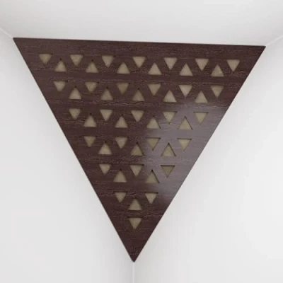 2 Pack — Ceiling Corner Bass Trap "Triangle F" Triangular Pyramid Acoustic Foam with Perforated Laminated HDF Plate and Fabric 42x42x42cm [ TRI Wenge Beige ]