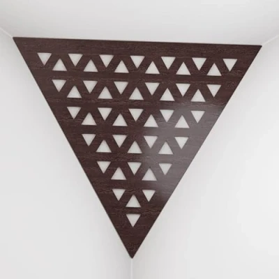 2 Pack — Ceiling Corner Bass Trap "Triangle F" Triangular Pyramid Acoustic Foam with Perforated Laminated HDF Plate and Fabric 42x42x42cm [ TRI Wenge White ]