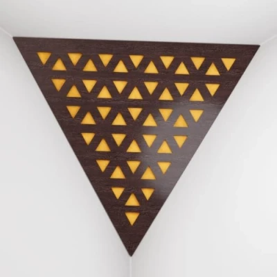 2 Pack — Ceiling Corner Bass Trap "Triangle F" Triangular Pyramid Acoustic Foam with Perforated Laminated HDF Plate and Fabric 42x42x42cm [ TRI Wenge Yellow ]