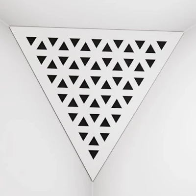 APPLICATION: These acoustic bass traps, made of high-density fiberboard with sound-absorbing materials, excel in the low and mid frequency ranges. Typically installed in the upper corners between the wall and ceiling, they are used in recording studios, home entertainment centers, music studios, corporate offices, training rooms, concert venues, conference rooms, canteens, hotels, residences, religious institutions, recreational facilities, and broadcasting studios. ACOUSTIC IMPROVEMENT: Improve the acoustics of your room with our premium acoustic сorner bass traps. These bass traps offer superior sound control by effectively absorbing sound and reducing echo in any environment. Unlike traditional foam bass traps, our solutions provide significantly improved performance. Choose from a variety of unique designs and colors to perfectly complement your interior. CHARACTERISTICS: -Combination of absorption and diffusion - Absorption is effective for mid and low frequencies - Overall Noise Reduction Coefficient (NRC) of 0.53 - Power Dissipation Range: 160 Hz to 5,000 Hz - Material composition: laminated high density fiberboard (HDF) and acoustic foam - Dimensions: Front Triangle Side: 42 cm (16.5 inches) | Corner Depth: 32 cm (12.6 inches) These products are sold in sets of two. MOUNTING OPTIONS: Each bass trap is supplied with "double-sided adhesive tape" for easy corner installation. Optimum fastening is achieved by using a construction adhesive, commonly known as "liquid nails". CAREFUL SERVICE: Ensuring your satisfaction is our top priority! Every purchase is backed by a money-back guarantee. Your happiness is directly linked to our clients' happiness. If you have any questions or concerns, don't hesitate to contact us. We will respond quickly! Your satisfaction is always our first concern.