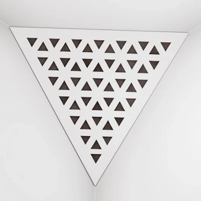 APPLICATION: These acoustic bass traps, made of high-density fiberboard with sound-absorbing materials, excel in the low and mid frequency ranges. Typically installed in the upper corners between the wall and ceiling, they are used in recording studios, home entertainment centers, music studios, corporate offices, training rooms, concert venues, conference rooms, canteens, hotels, residences, religious institutions, recreational facilities, and broadcasting studios. ACOUSTIC IMPROVEMENT: Improve the acoustics of your room with our premium acoustic сorner bass traps. These bass traps offer superior sound control by effectively absorbing sound and reducing echo in any environment. Unlike traditional foam bass traps, our solutions provide significantly improved performance. Choose from a variety of unique designs and colors to perfectly complement your interior. CHARACTERISTICS: -Combination of absorption and diffusion - Absorption is effective for mid and low frequencies - Overall Noise Reduction Coefficient (NRC) of 0.53 - Power Dissipation Range: 160 Hz to 5,000 Hz - Material composition: laminated high density fiberboard (HDF) and acoustic foam - Dimensions: Front Triangle Side: 42 cm (16.5 inches) | Corner Depth: 32 cm (12.6 inches) These products are sold in sets of two. MOUNTING OPTIONS: Each bass trap is supplied with "double-sided adhesive tape" for easy corner installation. Optimum fastening is achieved by using a construction adhesive, commonly known as "liquid nails". CAREFUL SERVICE: Ensuring your satisfaction is our top priority! Every purchase is backed by a money-back guarantee. Your happiness is directly linked to our clients' happiness. If you have any questions or concerns, don't hesitate to contact us. We will respond quickly! Your satisfaction is always our first concern.