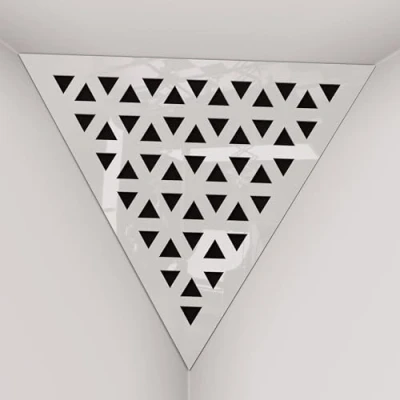 APPLICATION: These acoustic bass traps, made of high-density fiberboard with sound-absorbing materials, excel in the low and mid frequency ranges. Typically installed in the upper corners between the wall and ceiling, they are used in recording studios, home entertainment centers, music studios, corporate offices, training rooms, concert venues, conference rooms, canteens, hotels, residences, religious institutions, recreational facilities, and broadcasting studios. ACOUSTIC IMPROVEMENT: Improve the acoustics of your room with our premium acoustic сorner bass traps. These bass traps offer superior sound control by effectively absorbing sound and reducing echo in any environment. Unlike traditional foam bass traps, our solutions provide significantly improved performance. Choose from a variety of unique designs and colors to perfectly complement your interior. CHARACTERISTICS: -Combination of absorption and diffusion - Absorption is effective for mid and low frequencies - Overall Noise Reduction Coefficient (NRC) of 0.53 - Power Dissipation Range: 160 Hz to 5,000 Hz - Material composition: laminated high density fiberboard (HDF) and acoustic foam - Dimensions: Front Triangle Side: 42 cm (16.5 inches) | Corner Depth: 32 cm (12.6 inches) These products are sold in sets of two. MOUNTING OPTIONS: Each bass trap is supplied with "double-sided adhesive tape" for easy corner installation. Optimum fastening is achieved by using a construction adhesive, commonly known as "liquid nails". CAREFUL SERVICE: Ensuring your satisfaction is our top priority! Every purchase is backed by a money-back guarantee. Your happiness is directly linked to our clients' happiness. If you have any questions or concerns, don't hesitate to contact us. We will respond quickly! Your satisfaction is always our first concern.