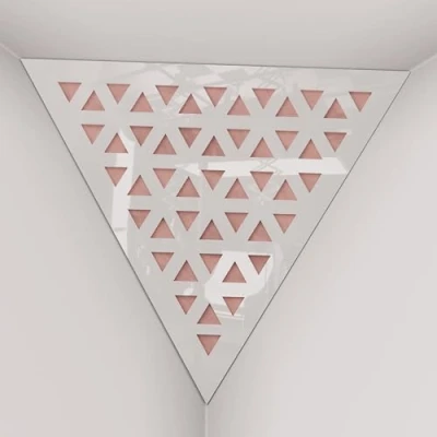 2 Pack — Ceiling Corner Bass Trap "Triangle F" Triangular Pyramid Acoustic Foam with Perforated Laminated HDF Plate and Fabric 42x42x42cm [ TRI White plastic Rose ]