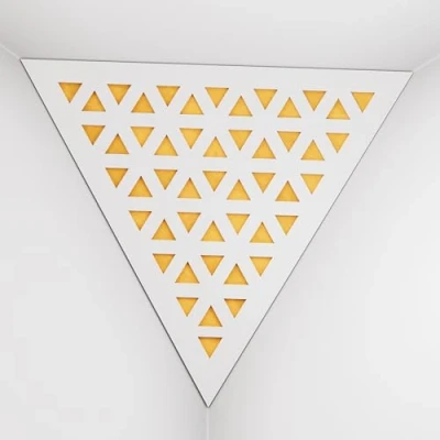 2 Pack — Ceiling Corner Bass Trap "Triangle F" Triangular Pyramid Acoustic Foam with Perforated Laminated HDF Plate and Fabric 42x42x42cm [ TRI White Yellow ]