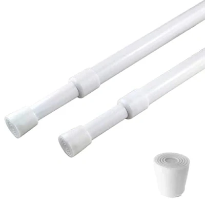 2 Pack Curtain Rod Adjustable 28 43 Inches,5/8" Diameter, White,Small Short Expandable Spring Loaded Tension Rods For Window, Bathroom, Cupboard,Kitchen