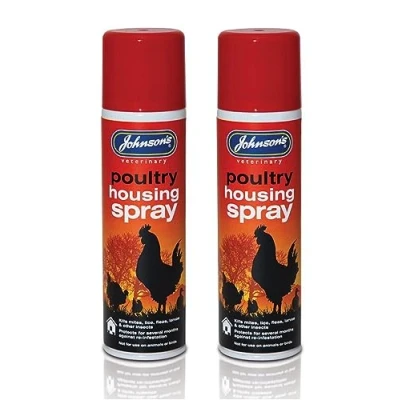 2 Pack JOHNSONS Veterinary Poultry HOUSING Spray 250ML Kills Mites LICE & Fleas