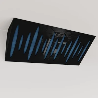2 Pack — Narrow Acoustic Corner Bass Trap with Velvet Fabric Diffusion Reflection Soundproofing Insulation Size: 23x50cm [ PULSE (Horizont) Black plastic Blue ]