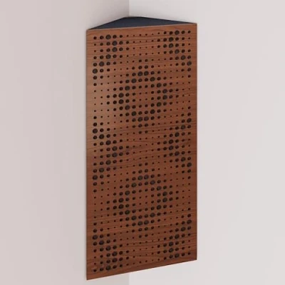 APPLICATIONS: These bass traps are decorated with velvet fabric, made of perforated wood and acoustic foam, are excellent for low and mid frequencies. For optimal results, they are installed in corners between walls, or at the intersection of a wall and ceiling. Most commonly used in: Recording studios, home theaters, music rooms, office spaces, rehearsal rooms, auditoriums, conference rooms, cafeterias, hotels, bedrooms, churches, game rooms, podcast rooms, etc. ACOUSTIC SOLUTION: Improve the acoustics of your room with our high quality acoustic wood bass traps. These bass traps are the perfect solution for bass control, providing effective sound absorption and low-frequency hum suppression in any environment. Compared to conventional foam bass traps, our wooden acoustic bass traps will show significantly better results. We have a variety of exclusive designs and colors to choose from, allowing you to choose the perfect solution to suit your decor. SPECIFICATIONS: Absorption and Diffusion | ABSORPTION FREQUENCY: Low Frequencies | OVERALL NRC: 0.41 | SCATTERING RANGE: 63Hz to 2000Hz | MATERIAL: Laminated HDF, Velvet fabric and Acoustic Foam | DIMENSIONS: 500x235x105mm (19.7x9.25x4 inches) | BOXES OF: 2 units. MOUNTING OPTIONS: Each bass trap comes complete with double-sided adhesive tape that allow you to easily mount the trap in a corner. To fix the bass trap in the corner where the wall and ceiling intersect, we recommend using a combination of our adhesive tape and glue. It is best to use construction adhesive, so-called ‘liquid nails’. CUSTOMER SUPPORT: Our team is committed to providing a positive experience with every order. If you encounter any issues with your product, you can reach out through your Amazon account — we're always ready to assist.