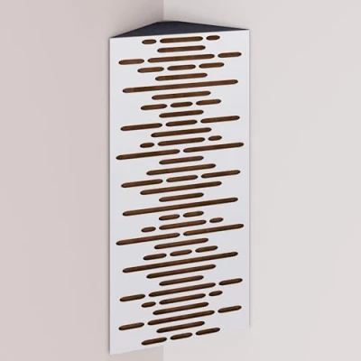APPLICATIONS: These bass traps are decorated with velvet fabric, made of perforated wood and acoustic foam, are excellent for low and mid frequencies. For optimal results, they are installed in corners between walls, or at the intersection of a wall and ceiling. Most commonly used in: Recording studios, home theaters, music rooms, office spaces, rehearsal rooms, auditoriums, conference rooms, cafeterias, hotels, bedrooms, churches, game rooms, podcast rooms, etc. ACOUSTIC SOLUTION: Improve the acoustics of your room with our high quality acoustic wood bass traps. These bass traps are the perfect solution for bass control, providing effective sound absorption and low-frequency hum suppression in any environment. Compared to conventional foam bass traps, our wooden acoustic bass traps will show significantly better results. We have a variety of exclusive designs and colors to choose from, allowing you to choose the perfect solution to suit your decor. SPECIFICATIONS: Absorption and Diffusion | ABSORPTION FREQUENCY: Low Frequencies | OVERALL NRC: 0.41 | SCATTERING RANGE: 63Hz to 2000Hz | MATERIAL: Laminated HDF, Velvet fabric and Acoustic Foam | DIMENSIONS: 500x235x105mm (19.7x9.25x4 inches) | BOXES OF: 2 units. MOUNTING OPTIONS: Each bass trap comes complete with double-sided adhesive tape that allow you to easily mount the trap in a corner. To fix the bass trap in the corner where the wall and ceiling intersect, we recommend using a combination of our adhesive tape and glue. It is best to use construction adhesive, so-called ‘liquid nails’. CUSTOMER SUPPORT: Our team is committed to providing a positive experience with every order. If you encounter any issues with your product, you can reach out through your Amazon account — we're always ready to assist.