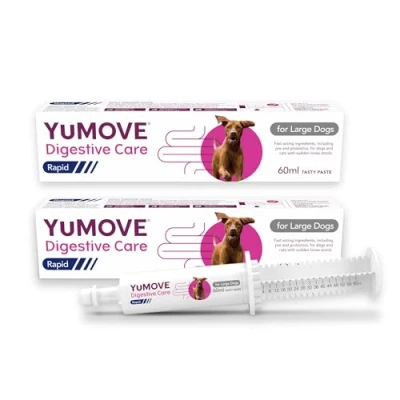 YuMOVE Digestive Care Rapid is a supplement for dogs with fast-acting ingredients to help firm sudden loose stools Our pre and probiotic paste helps firm stools, soothes gut lining and supports recovery after a digestive upset Contains scientifically backed ingredients, like pre and probiotics to support gut health Can be used alongside other YuMOVE Digestive Care products From YuMOVE, the UK’s no.1 veterinary joint supplement brand**